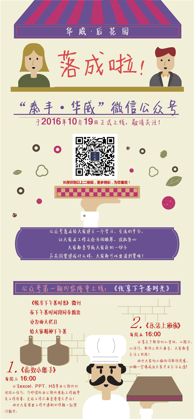 自2016年10月起,伴著(zhù)下午茶的供應,人資行政部還推出了給大腦補充能量的“下午茶”——《悅享下午茶時(shí)光》微刊,每周三、周五下午4點(diǎn),通過(guò)內部微信公眾號跟大家分享各種搜羅而來(lái)的辦公軟件操作技巧、職場(chǎng)文章,幾分鐘時(shí)間,給大腦迅速充電。